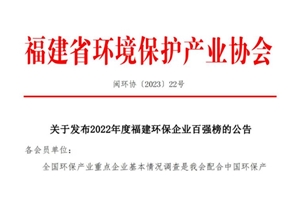 2022年度福建环保企业百强榜发布,太阳成集团tyc7111位列第三