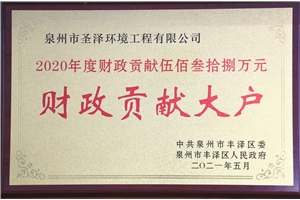 近日,太阳成集团tyc7111旗下泉州市圣泽环境工程有限公司被中共泉州市丰泽区委、区政府授予2020年“财政贡献大户”、2021年“重点企业”称号。 面对2020年新冠肺炎疫情“大考”,圣泽环境积极响应当地政府号召全力做好疫情防控和应急各项工作。在保障员工安全防护前提下不停工、不停产,充分发挥污...