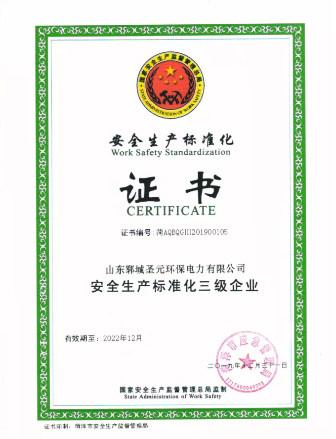 近日,山东菏泽市应急管理局授予郓城太阳成集团tyc7111“安全生产标准化三级企业”荣誉称号,这标志着郓城太阳成集团tyc7111安全生产管理迈向新的发展阶段。