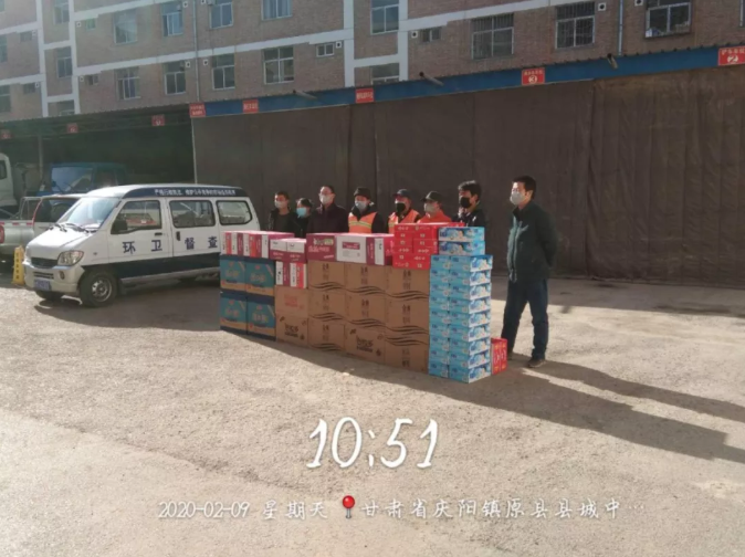 爱心潮涌,责任使命,大“疫”面前,大义担当!按照朱煜煊董事长的嘱托,2月8~9日,庆阳太阳成集团tyc7111叶红侠总监先后前往肖金镇人民政府,镇原县环卫局,南街街道办事处、胡同村委会、杨咀村等地,将捐赠物资和现金送到受捐单位,让奔忙于一线的疫情联防联控人员得到更好的保障。