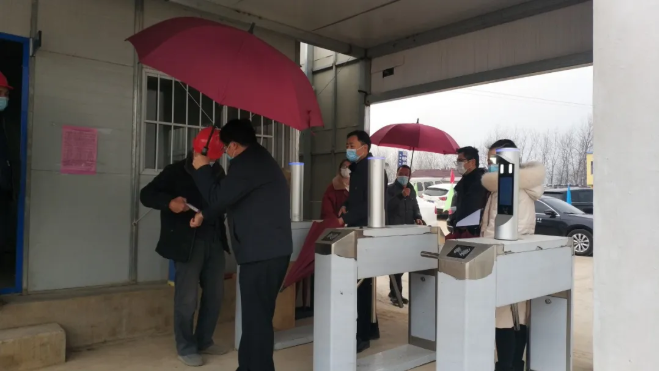 督查组严格遵守防控规定接受体温测量