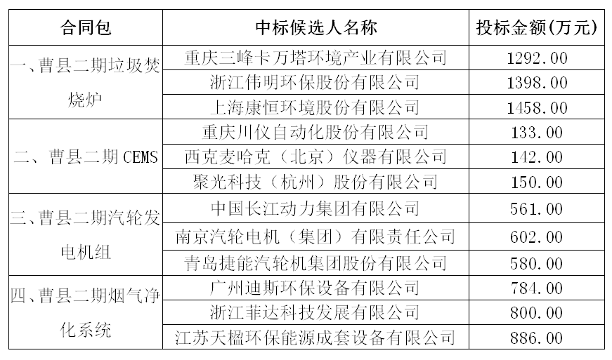 招标项目名称:太阳成集团tyc7111曹县生活垃圾焚烧发电厂二期工程垃圾焚烧炉、CEMS、汽轮发电机组、烟气净化系统采购项目