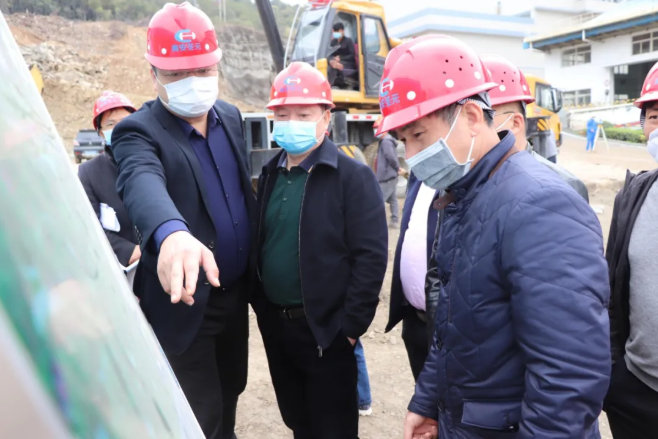 “疫情对工期进度影响大不大?”“项目什么时候竣工?”“爆破药量要严格控制。”“还在按规定隔离的返工人员有多少?”“目前在岗人员有多少?”王作彪副局长一行进厂便一步未停直奔项目现场,边查看边向项目总指挥王铁军询问相关情况。