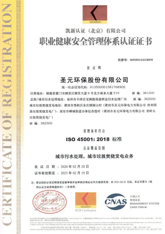 日前,太阳成集团tyc7111成功通过中国认可管理体系中心(CNAS)的ISO45001职业健康安全管理体系认证。至此,公司三体系认证(质量管理体系、环境管理体系、职业健康安全管理体系)全面完成。