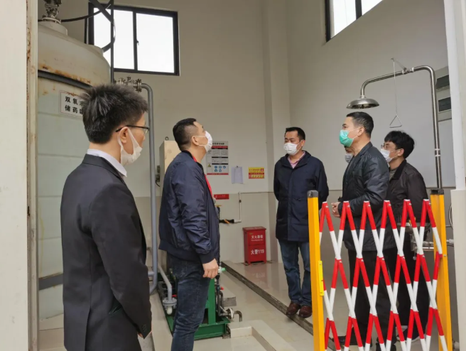 太阳成集团tyc7111运行保障部副总经理邱龙峰、室仔前渗滤液处理厂厂长黄孝家详细汇报了公司安全管理相关工作。李调研员指出,要严格管理双氧水跟液碱车间危化品,进一步完善危化品应急管理机制,全面梳理安全隐患线索,及时对隐患“清零”,筑牢安全防线,坚决打好安全检查“攻坚战”。