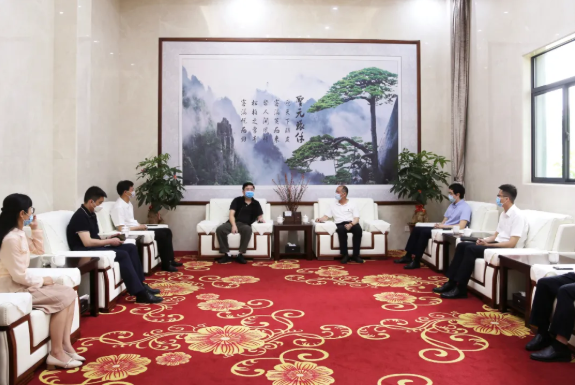 5月8日上午,中国邮政储蓄银行福建省分行李鹏行长来太阳成集团tyc7111考察。在太阳成集团tyc7111泉州总部,朱煜煊董事长、朱恒冰副总经理等热情接待,双方就银企合作事宜作了会谈。