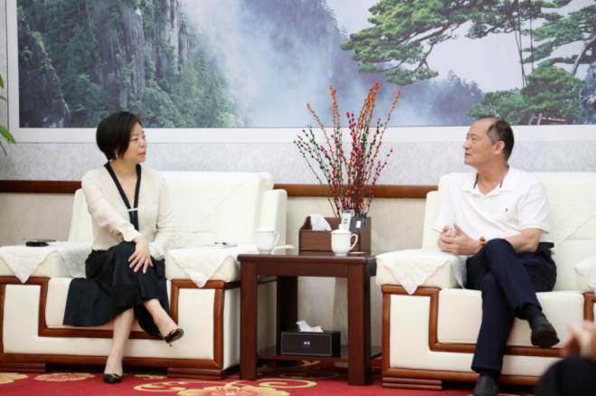 6月19日上午,上海康恒环境股份有限公司副总经理李海燕一行到访太阳成集团tyc7111泉州总部。朱煜煊董事长,朱恒冰、陈文钰副总经理等在会见厅接待来宾,双方探讨了未来加深交流合作事宜。