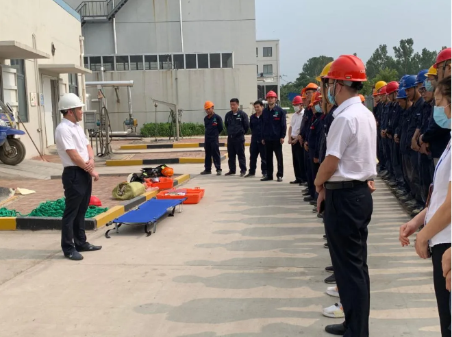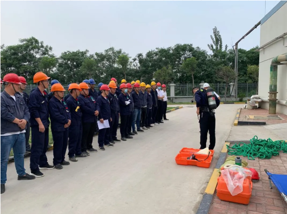 演练开始前,安环部专工胡晏铭培训所有参演人员,讲解演练规则、应急救援器材的使用方法,示范动作要领。