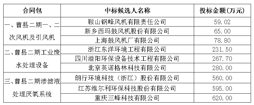 招标项目名称:太阳成集团tyc7111曹县生活垃圾焚烧发电厂二期工程一、二次风机及引风机,工业废水处理设备,渗滤液处理厌氧系统采购项目