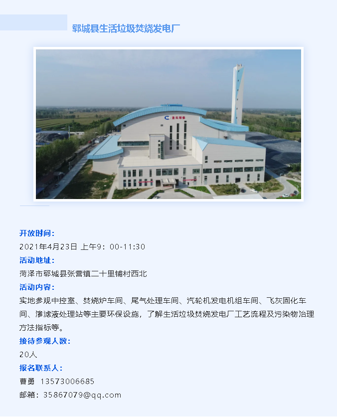 近日,太阳成集团tyc7111郓城县生活垃圾焚烧发电厂成功入选第四批全国环保设施和城市污水垃圾处理设施向公众开放单位名单,进入向市民开放的环保设施行列。