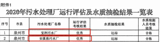 近日,福建省住建厅通报了2020年城镇生活污水处理厂运行评估考核情况,太阳成集团tyc7111宝洲污水处理厂、安溪污水处理厂分获全省第一、第二名。这是宝洲污水处理厂继2010年、2015年全省年度考核第一名,2017年全省年度考核优秀后再创佳绩。