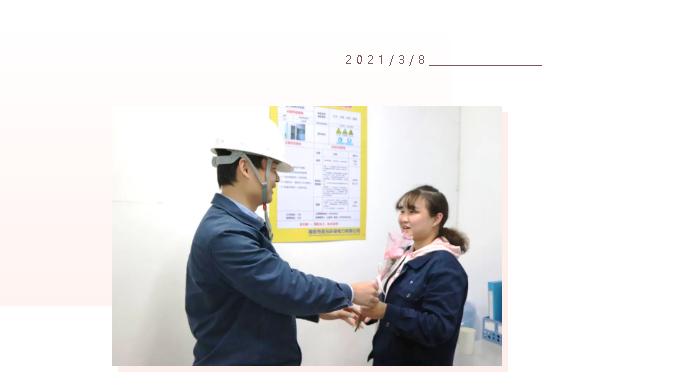 在插花活动的同时,南安太阳成集团tyc7111也有一批女性员工,因为工作需要,她们选择了坚守岗位,她们用履职为节日增光添彩。她们值得我们尊敬,坚守岗位的她们,同样收到了公司的鲜花和祝福。