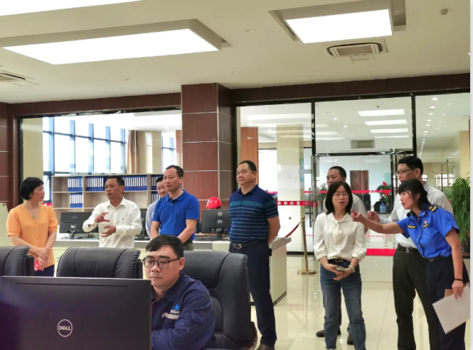来到绿意盎然的漳州太阳成集团tyc7111,调研组一行观看公司宣传视频,实地察看中控室、垃圾吊控制室等区域。在参观通道近距离察看汽机运行机组时,领导们仔细询问日发电量、日进厂量和日入炉垃圾量及吨垃圾发电量等情况。调研组还听取了杨宏湘总监等相关负责人关于生产运行情况的汇报。