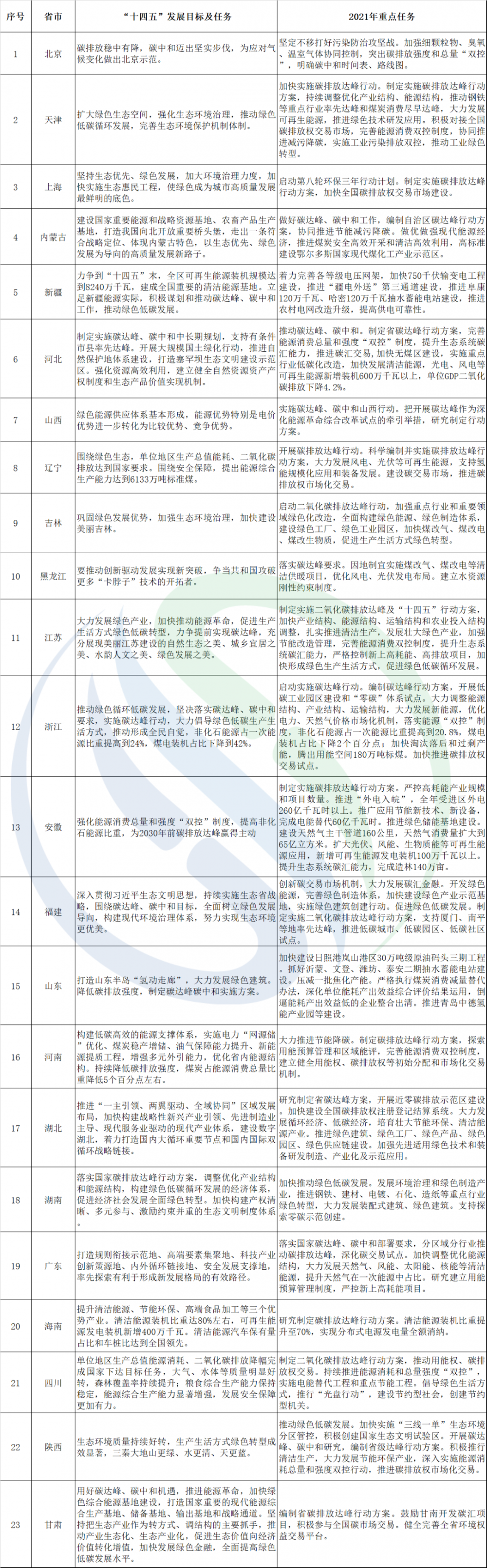2020年底,《中共中央关于制定国民经济和社会发展第十四个五年规划和二〇三五年远景目标的建议》明确指出:降低碳排放强度,支持有条件的地方率先达到碳排放峰值,制定2030年前碳排放达峰行动方案。