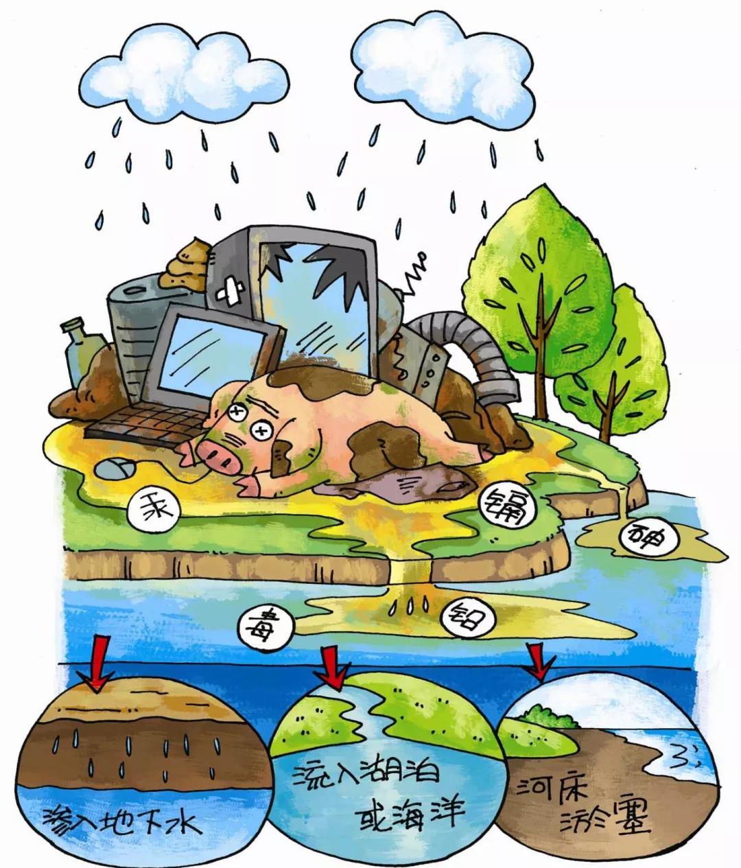 随意堆放的固体废物中的有害物质一部分会随着天然降水和地表径流流入或者随风迁移进入河流湖泊,污染地表水体;还有一部分可能渗滤到土壤中,进入地下水。例如,部分不规范垃圾填埋场的地下水色度和部分重金属含量及大肠杆菌数等指数都严重超标。将固体废物直接倾倒于河流、湖泊或海洋,会导致河床淤塞、水面减小,影响水利工程设施的运转,其中的有害物质会造成大范围的水体污染。