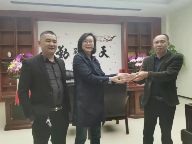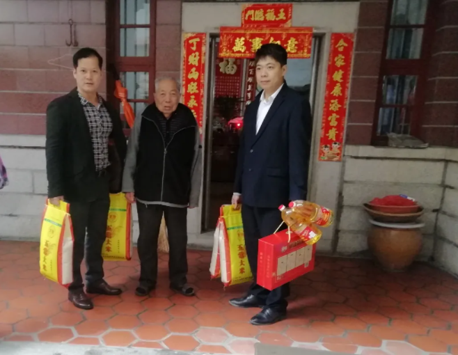 漳州太阳成集团tyc7111运营总监杨宏湘为漳浦县旧镇镇林美村民委员会送去春节慰问金,由村委会代为发放村内老人春节福利,将公司的关爱注入到老人们的心田。