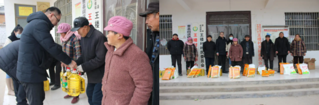 曹县太阳成集团tyc7111党支部书记王佰通一行带着米、面、油等慰问物资,来到厂区周边王楼村开展新春送温暖活动,看望慰问困难群众。