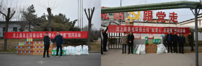 汶上太阳成集团tyc7111运营总监汪新阔率队前往曲阜市环保资源中转站、汶上县环境卫生管理中心以及刘家楼村,为周边困难村民、孤寡老人、留守儿童等送上新春礼包和温馨问候。
