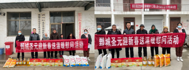 鄄城太阳成集团tyc7111运营总监吴小平带领慰问小组,在北富春村村委干部的陪同下,为困难家庭和孤寡老人并送上了油、大米、面粉等新春慰问品和新春佳节的美好祝福。