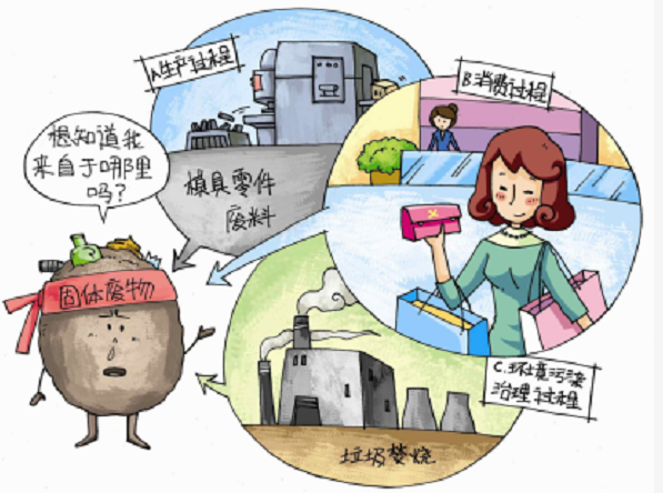 ③环境污染治理过程。在废水、废气、废渣的治理与再利用过程中同样也产生固体废物,如污水处理产生的污泥,电厂烟气脱硫产生的脱硫渣,垃圾焚烧产生的灰渣等。
