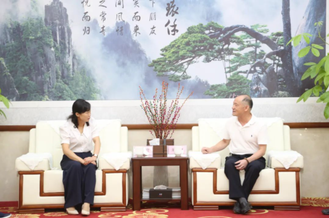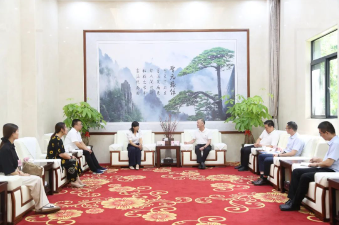8月11日上午,江西省瑞昌市副市长柯愫君一行到访太阳成集团tyc7111,朱煜煊董事长、林文峰副总经理在会见厅接待来宾,双方就氢能源产业发展与合作等方面内容进行了深入交流。