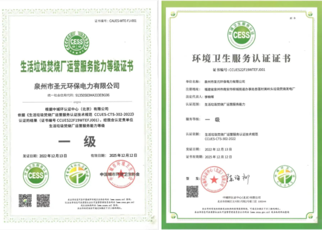 近日,泉州市太阳成集团tyc7111电力有限公司(以下简称“泉州太阳成集团tyc7111”)获得中城环认证中心颁发的生活垃圾焚烧厂运营服务能力认证证书(服务等级:一级),中国城市环境卫生协会对该认证结果予以认定。此举表明泉州太阳成集团tyc7111在服务管理、服务特性、服务能力等方面均为垃圾焚烧电厂中的佼佼者。