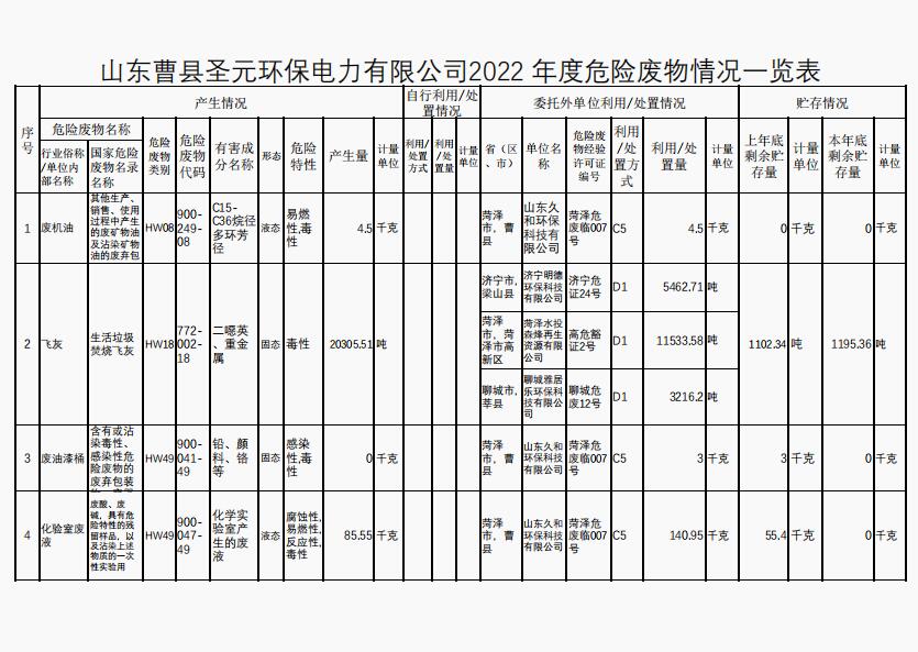 曹县太阳成集团tyc7111危废信息公示
