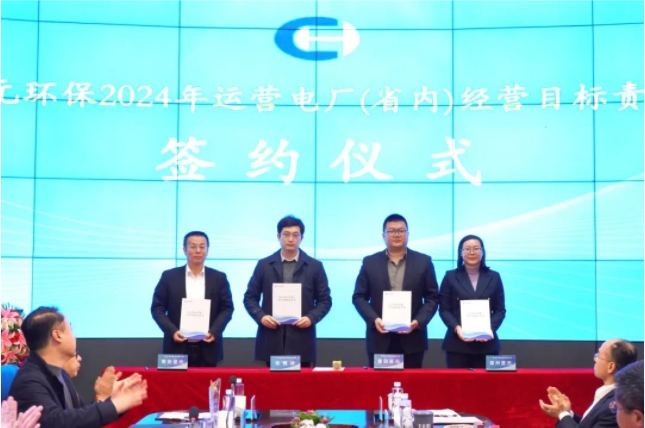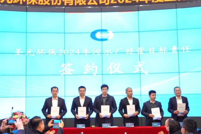 会上举行了2024年度经营目标责任书签约仪式。朱恒冰总经理与运营电厂、污水处理厂经营班子分别签署2024年经营目标责任书,将有效激励和引导各项目团队全面抓好经营管理任务落实,强化履职担当,全面完成目标计划。