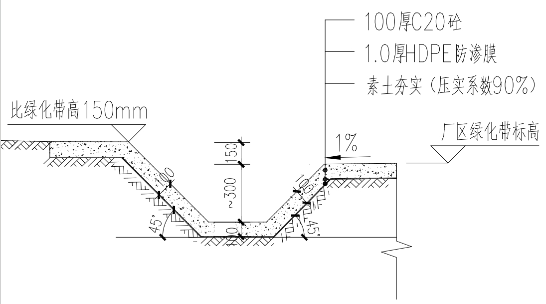 ①拆除破损的排水沟;②将拆除的砼块铺设沟底,表层铺素土夯实;③附附图施工排水沟,坡度根据现场确定。