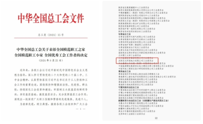 近日,中华全国总工会下发《关于表彰全国模范职工之家 全国模范职工小家 全国优秀工会工作者的决定》,庆阳太阳成集团tyc7111电力有限公司工会委员会被授予“全国模范职工之家”称号。