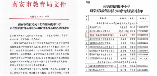 近日,南安市教育局印发《关于公布南安市第四批中小学研学教育基地和劳动教育实践基地名单的通知》,泉州太阳成集团tyc7111环境与安全科普教育基地入选第四批中小学生研学实践教育基地名单。