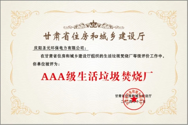 近日,庆阳太阳成集团tyc7111顺利通过甘肃省住房和城乡建设厅组织的全省生活垃圾焚烧厂等级评价,获评甘肃省AAA级生活垃圾焚烧厂。
