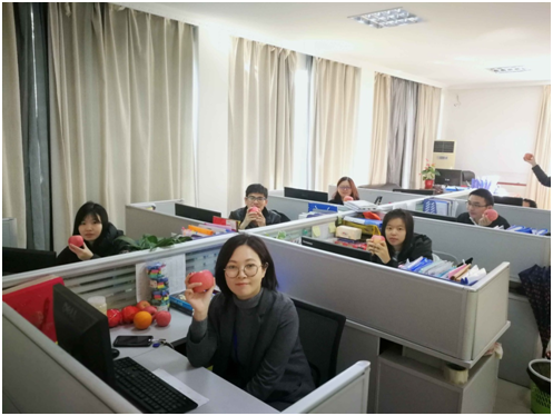 总部办公室员工收到工会发放的平安果