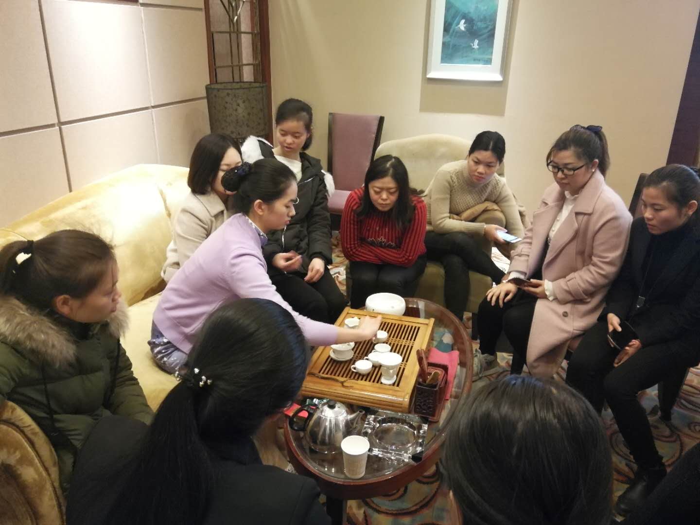 在实操环节,授课老师安排了丰富、生动、活泼的实操内容,主要有会议布置、西餐礼仪、中餐礼仪、咖啡调制、红酒品鉴等,参训人员听得津津有味。