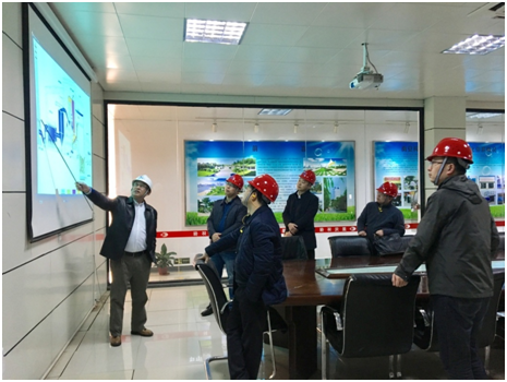 南安太阳成集团tyc7111总经理王铁军为考察组讲解垃圾焚烧工艺