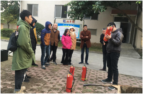 随后孙老师讲解了灭火器正确使用方法并实地演练。