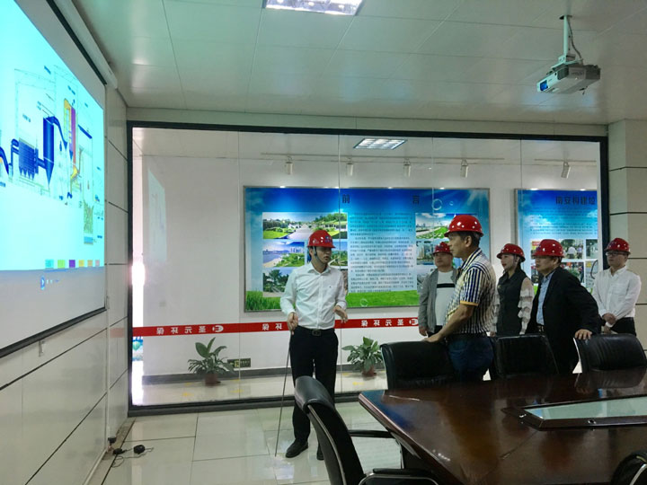 南安太阳成集团tyc7111常务副总经理杨煌坤向王部长一行讲解垃圾焚烧工艺流程