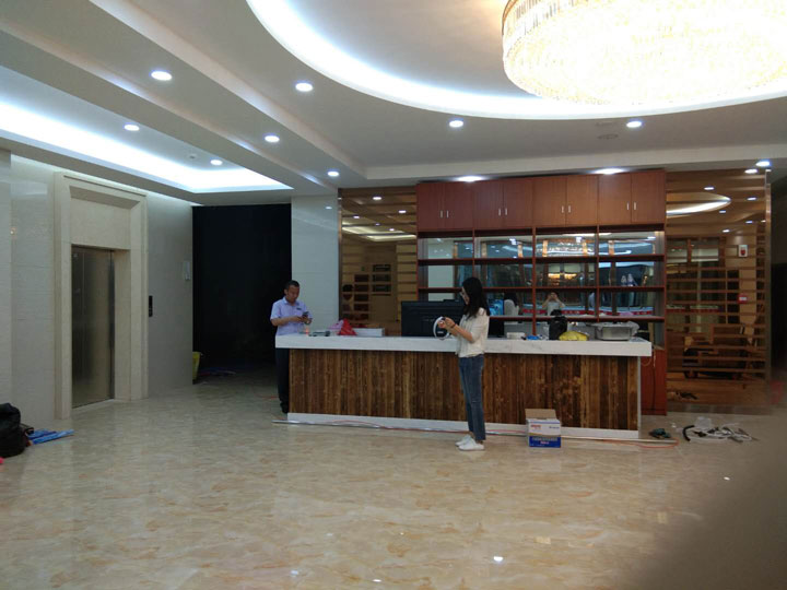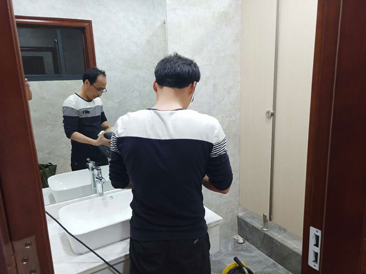 24日22:25人事行政部水电维修工在四楼安装卫生间纸巾盒