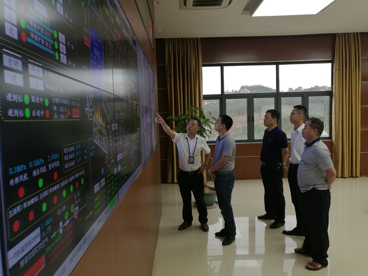 在中控室,王副总经理专业、详细地介绍了垃圾焚烧的工艺流程。随后郭副局长一行参观了垃圾吊操作间。