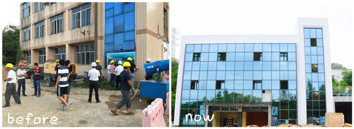 朱煜煊董事长首先对室仔前项目综合楼的内外装修工程进行了深入细致的检查,对装修的效果给予了充分的认可,并与谢炳成总指挥现场研究了一楼大厅外墙的装饰方案。