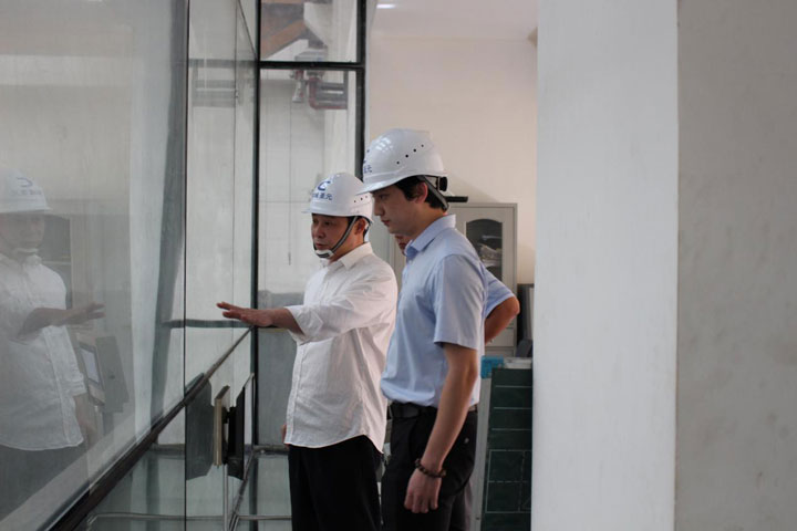 2018年5月14日下午,朱恒冰副总经理到郓城太阳成集团tyc7111检查工作。郓城太阳成集团tyc7111总经理曾勇,副总经理王鹏陪同。朱恒冰副总经理对郓城厂的垃圾吊操作室、参观走廊、生产现场、渗滤液处理站、渗滤液收集池进行了全面检查。