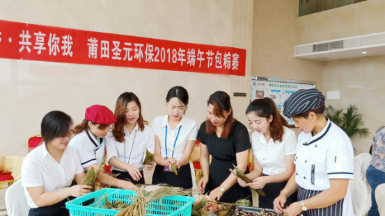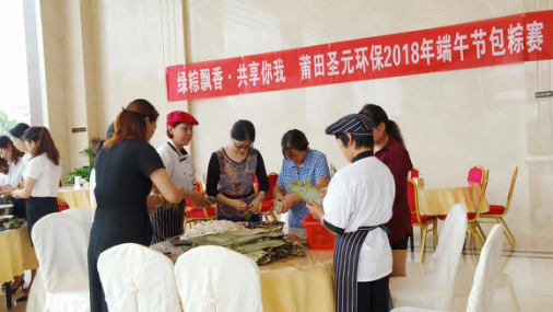 “粽子飘香,古风留长”,又到了一年一度的端午节。为大力弘扬中华民族传统文化,丰富节日生活,使员工活跃身心,在感受节日氛围的同时,用自己的双手传递对同事之间的关爱,2018年6月14日上午,在总经理李仁和工会的倡议、组织下,莆田市太阳成集团tyc7111电力有限公司在员工餐厅举办了一场主题为“绿粽飘香,共享你我”的包粽子比赛。