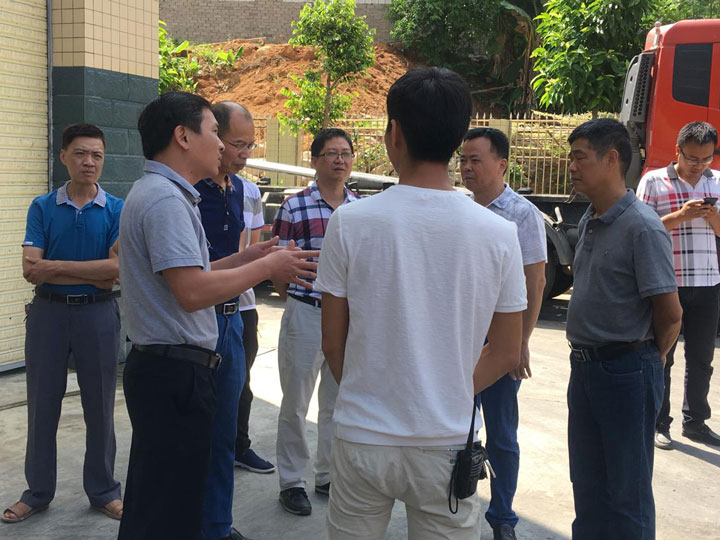 黄金福厂长向杨志成副主任详细介绍了转运中心的运营情况、垃圾收集情况、相关环保管控措施等,同时带领大家参观了地磅房、转运车间,并详细讲解了垃圾压缩处理转运操作流程和渗滤液处理技术。