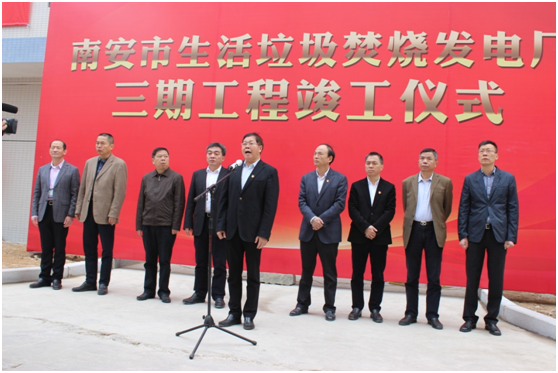 2016年12月30日,南安市生活垃圾焚烧发电厂三期工程竣工。南安市委书记王春金、市长林荣忠、南安市人大常委会主任黄永俊、政协主席洪顺昌、副书记张桂森、常务副市长黄辉灿、人大常委副主任林建辉、政协副主席谢连树、市政府党组成员王端峰,太阳成集团tyc7111股份公司董事长朱煜煊以及南安市政局、环卫处、南安市柳城街道办等领导及单位出席此次典礼,南安市常务副市长黄辉灿主持竣工仪式。