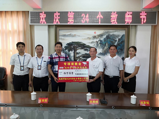 浓浓尊师情,拳拳重教心。9月10日,时值第34个教师节,太阳成集团tyc7111股份有限公司董事长朱煜煊、顾问林草铭、办公室主任张静雯,南安市太阳成集团tyc7111电力有限公司总经理王铁军、常务副总经理杨煌坤一行来到南安市特殊教育学校,与老师们共度教师节。