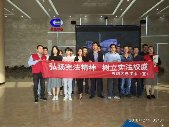作为“宪法宣传周”的主要活动之一,12月4日上午,莆田市秀屿区总工会主席林志伟、秀屿区副书记姚冰珊一行亲临莆田太阳成集团tyc7111指导工会组织开展以“弘扬宪法精神,树立宪法权威”为主题的宪法普及日活动。公司职工共同学习了宪法修正案,进行庄严的宪法宣誓。