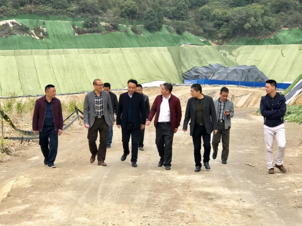 检查组检查飞灰固化填埋场扩建工程施工现场
