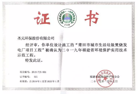 近日,中国环境保护产业协会正式发布《2018年重点环境保护实用技术示范工程名录》(中环协〔2018〕319号),莆田太阳成集团tyc7111垃圾焚烧发电厂项目工程凭借技术成熟先进、运行良好稳定、环境友好、管理完善等优点,获得评审专家的高度认可,成功入选中国重点环境保护实用技术示范工程名录(2018年),为全国唯一一家入选《名录》的垃圾焚烧处理的示范工程。