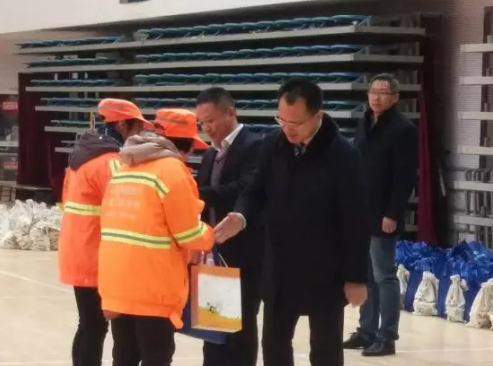 吴小平总监为环卫工人代表送上生活物资