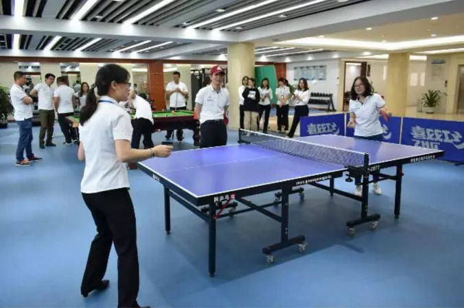 下午,双方单位青年职工还在莆田太阳成集团tyc7111社区共享中心参加了趣味运动赛。桌球、羽毛球等项目接踵而至,大家秉承“友谊第一,比赛第二”的精神,互相协作,凝心聚力,在互动中增进友谊,在竞争中激发干劲,充分展现出青年职工朝气蓬勃的面貌。比赛结束,温文峰书记代表两家单位领导为获奖选手颁发奖品。